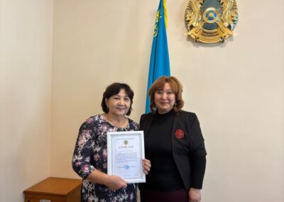 От имени отдел образования Актюбинской области Булбул Кузембаевой ветеран нашего учителя Маржан Хамитовну. Ваша сознательная жизнь-пример неизмеримого труда и милосердия к воспитанию поколений, будущему страны. Сегодняшний день-это день, когда вы отдаете дань уважения своим заслугам и чувствуете тепло своего педагогического сердца. Для нас вы-мудрая и индивидуальная личность, Маяк нравственной жизни. Семена добра и знаний, которым вы учили, сегодня прорастают в сердцах многих молодых людей и служат стране. Пусть навсегда останется тепло ваших учеников и коллег, благополучие вашей семьи, молодость вашего сердца! Желаем вам крепкого здоровья, большого счастья, долгих лет жизни!